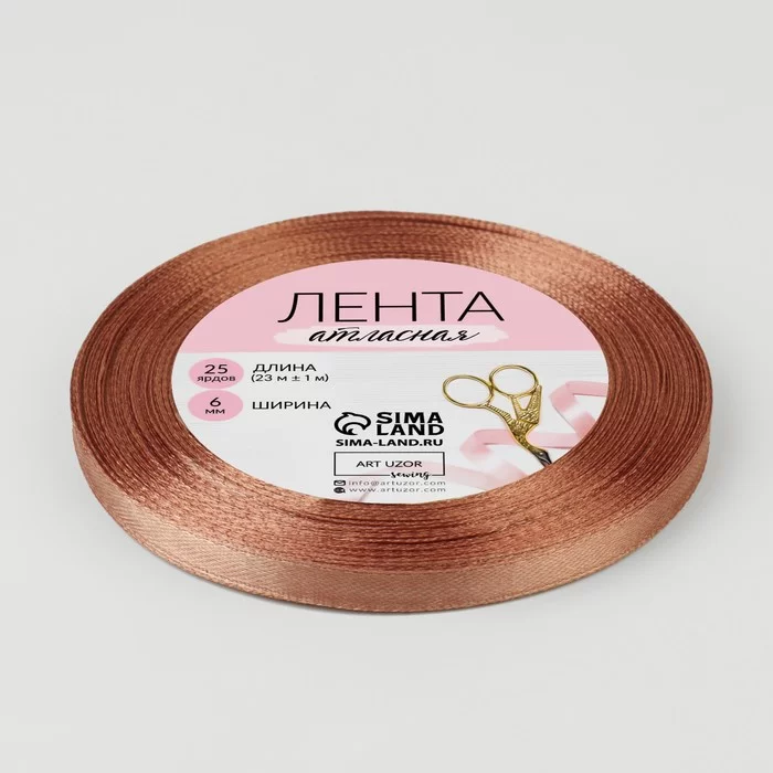 Лента атласная №136 6мм*25±1ярд бронзовый АУ 6880450