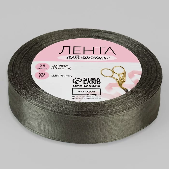 Лента атласная №142 20мм*25±1ярд серо-зёленый АУ 1218303