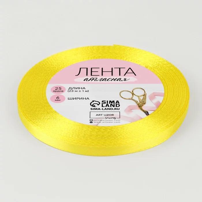 Лента атласная №15 6мм*25±1ярд жёлтый АУ 1218078