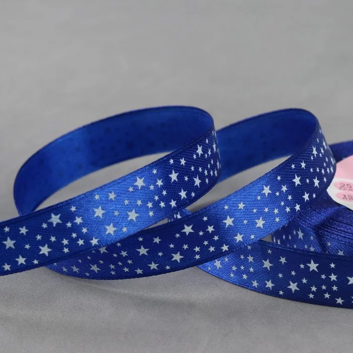 Лента атласная 15мм*25±1ярд звёзды №040 синий АУ 1902819