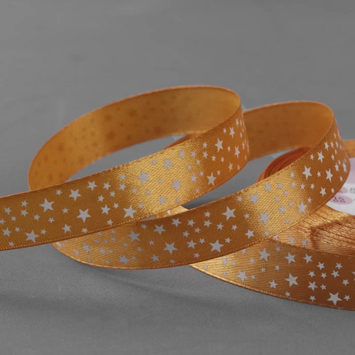 Лента атласная 15мм*25±1ярд звёзды №097 бежевый АУ 1902820