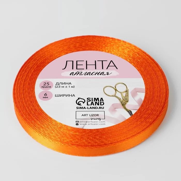 Лента атласная №24 6мм*25±1ярд ярко-оранжевый АУ 1218117