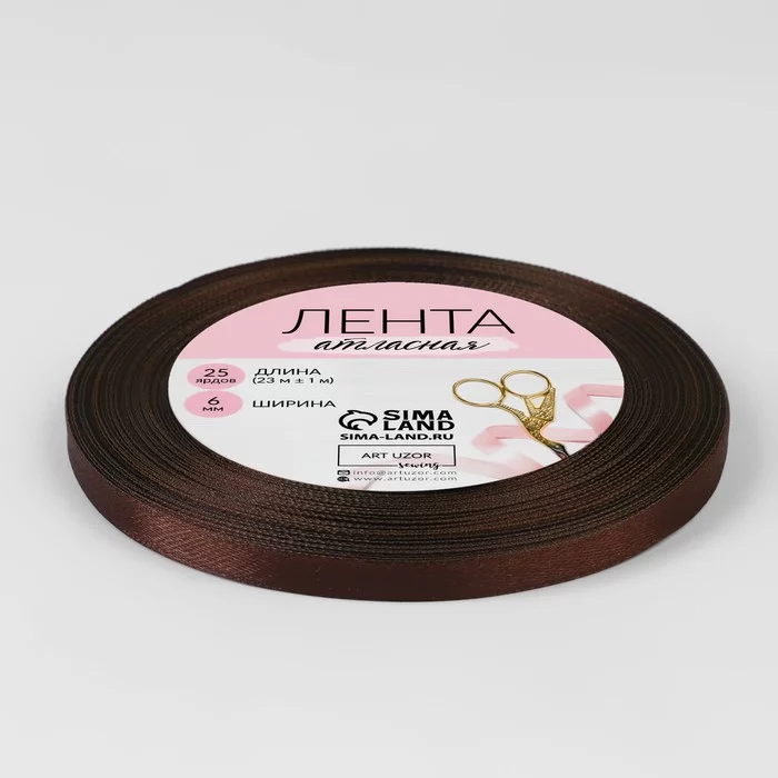 Лента атласная №31 6мм*25±1ярд шоколадный АУ 1218124