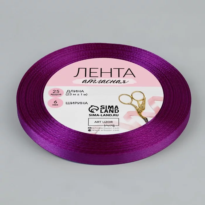Лента атласная №34 6мм*25±1ярд пурпурный АУ 1218073