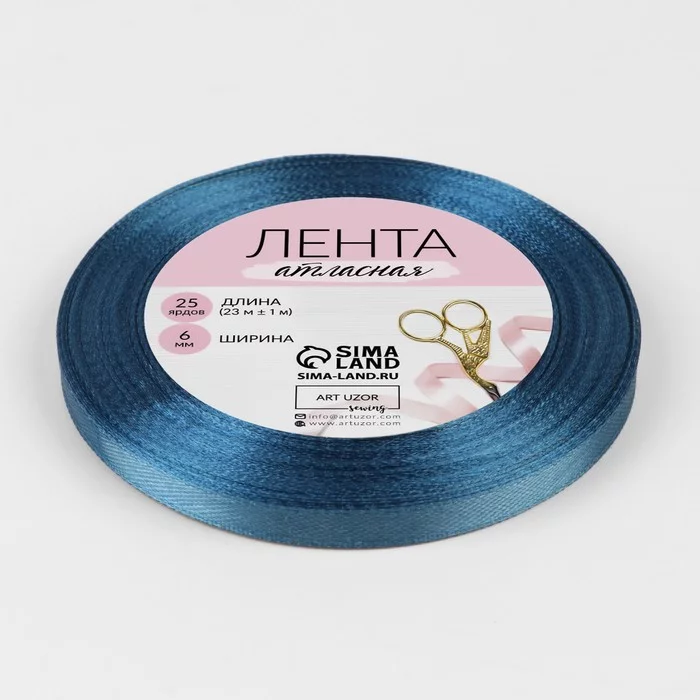 Лента атласная №36 6мм*25±1ярд лазурно-синий АУ 1218102