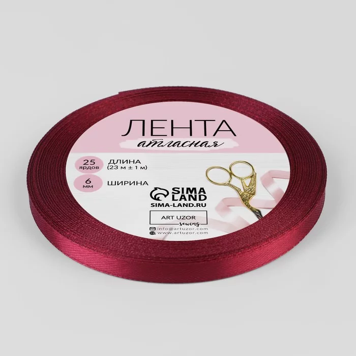 Лента атласная №37 6мм*25±1ярд вишнёвый АУ 1218134