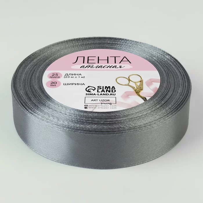 Лента атласная №60 20мм*25±1ярд тёмно-серый АУ 1218302