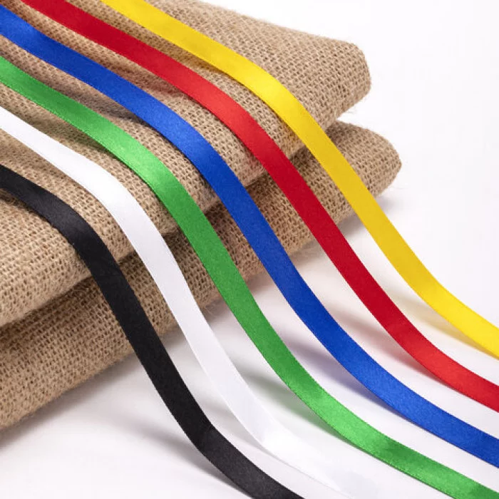 Атласная лента изготовлена из 100% полиэстера, с ткаными кромками на обоих краях. Кромка на краях ленты выполнена с применением полиэстеровой нити. Лента изготовлена с применением саржевого способа переплетения нитей.