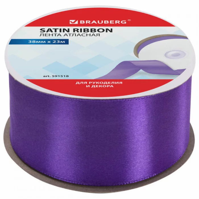 Лента атласная ширина 38 мм, длина 23 м, фиолетовая, BRAUBERG, 591518