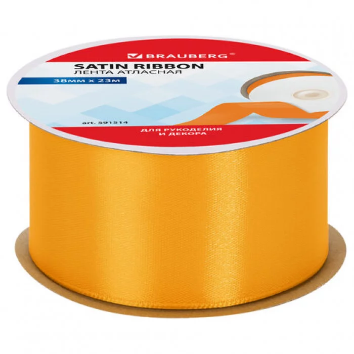 Лента атласная ширина 38 мм, длина 23 м, оранжевая, BRAUBERG, 591514