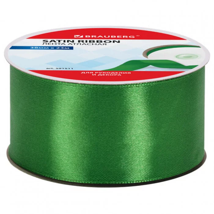 Лента атласная ширина 38 мм, длина 23 м, зеленая, BRAUBERG, 591511