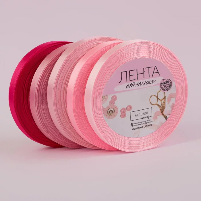 Лента атласная (цена за 1 ленту) 10мм*25±1ярд спектр розовый 2611785