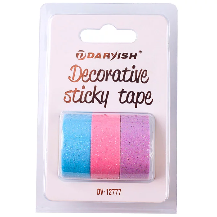 Лента декоративная липкая 3шт/уп 15мм*3м "Darvish" блёстки ассорти DV-12777