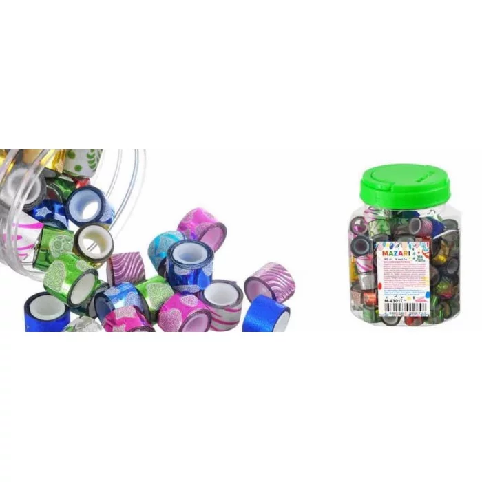 Лента клейкая M-4301Т декоративная цв. с блёст, 1шт размером 1, 2 см х 1 метр, микс