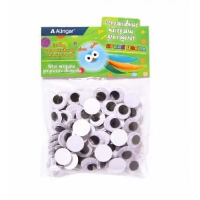 Материал декоративный Alingar "Глазки", d=1, 5 см, 80 шт, круглые, черные, пакет с европодвесом AL9053