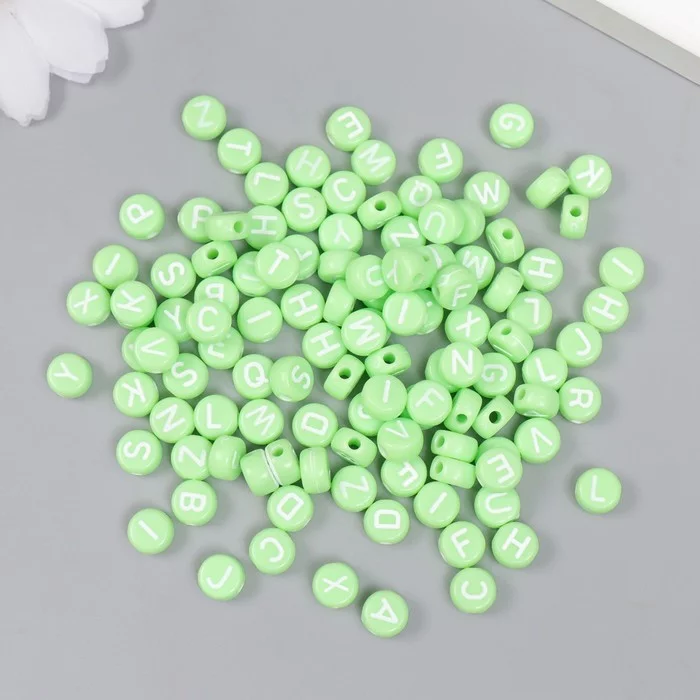 Набор бусин для творчества пластик "Английские буквы" зелёные 20 гр 0, 4х0, 7х0, 7 см 7811524