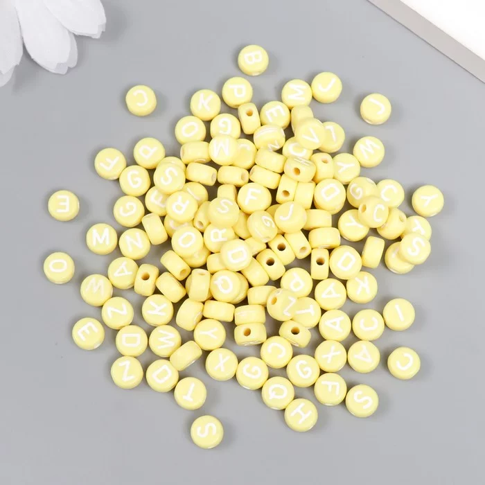 Набор бусин для творчества пластик "Английские буквы" жёлтые 20 гр 0,4х0,7х0,7 см 7811527