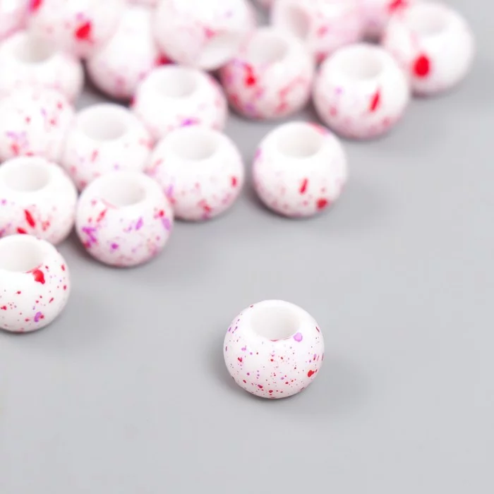 Бусины для творчества пластик "Брызги краски. Фуксия на белом" d=1 см набор 20 гр