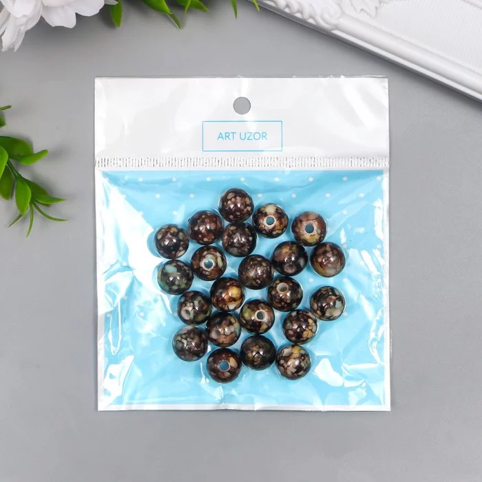 Бусины для творчества пластик "Мраморные. Кофе" d=1,2 см набор 20 гр