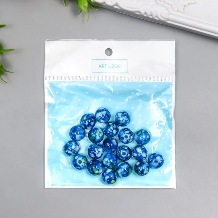 Набор бусин для творчества пластик "Мраморные. Сапфир" d=1, 2 см набор 20 гр 7490029