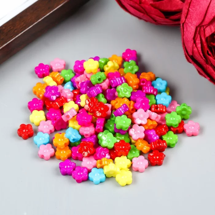 Набор бусин для творчества пластик "Цветные микро цветочки" набор 150 шт 0, 4х0, 9х0, 9 см 4645555