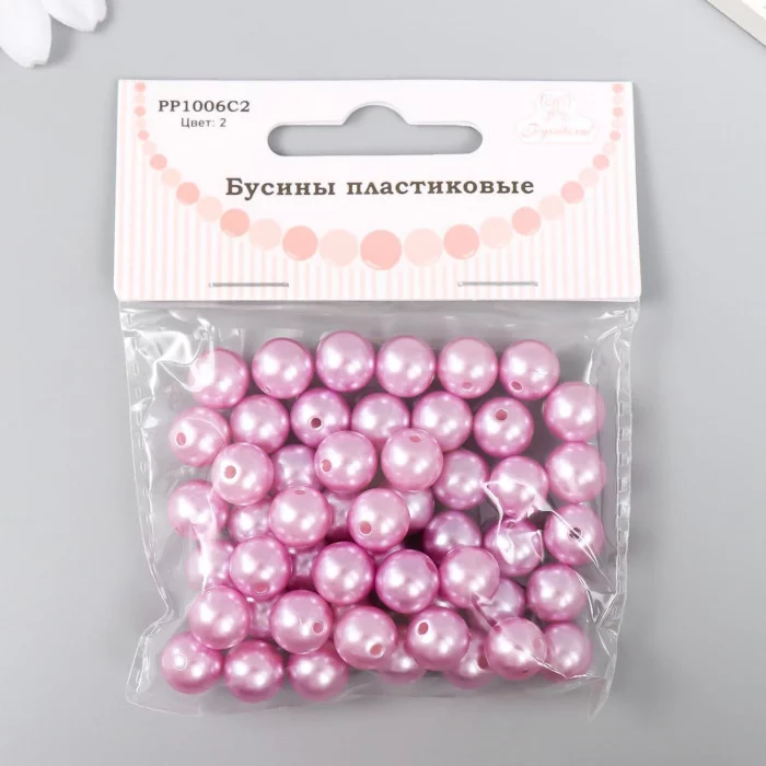 Набор бусин "Рукоделие" пластик, диаметр 10 мм, 25 гр, светло-розовый 9527216
