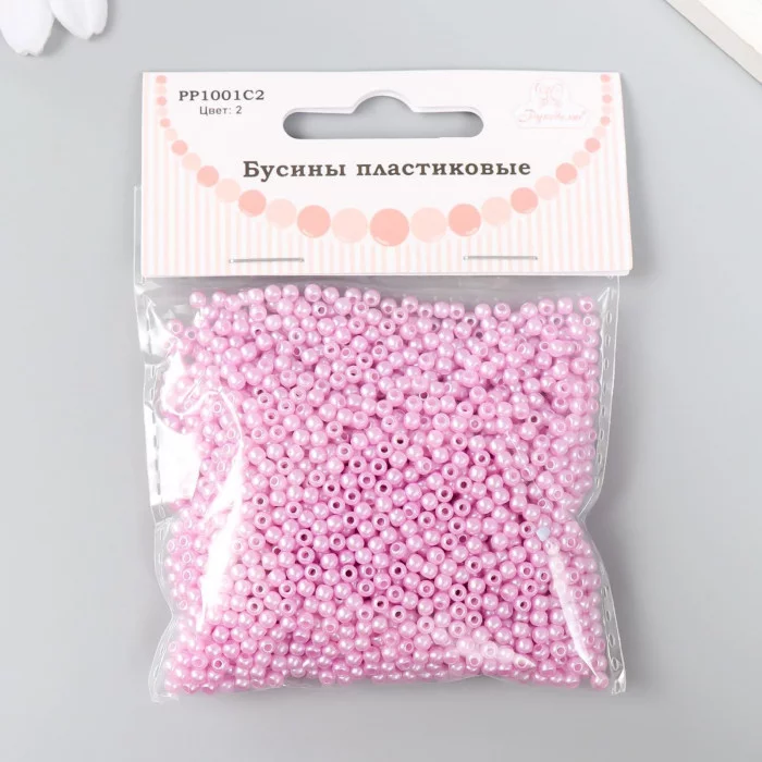 Набор бусин "Рукоделие" пластик, диаметр 3 мм, 25 гр, светло-розовый 9527140 9527140