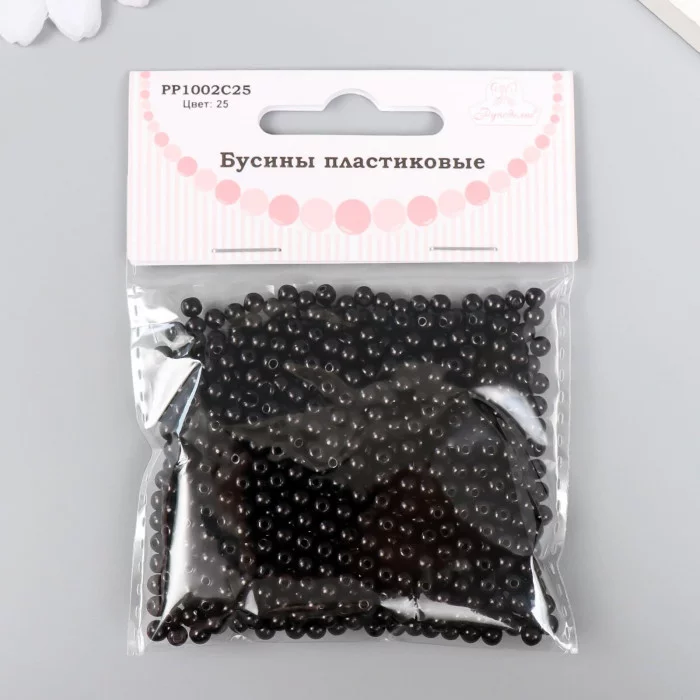 Набор бусин "Рукоделие" пластик, диаметр 4 мм, 25 гр, черный 9527153
