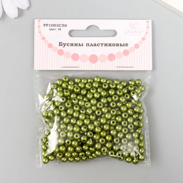 Набор бусин "Рукоделие" пластик, диаметр 5 мм, 25 гр, болотно-зеленый 9527172