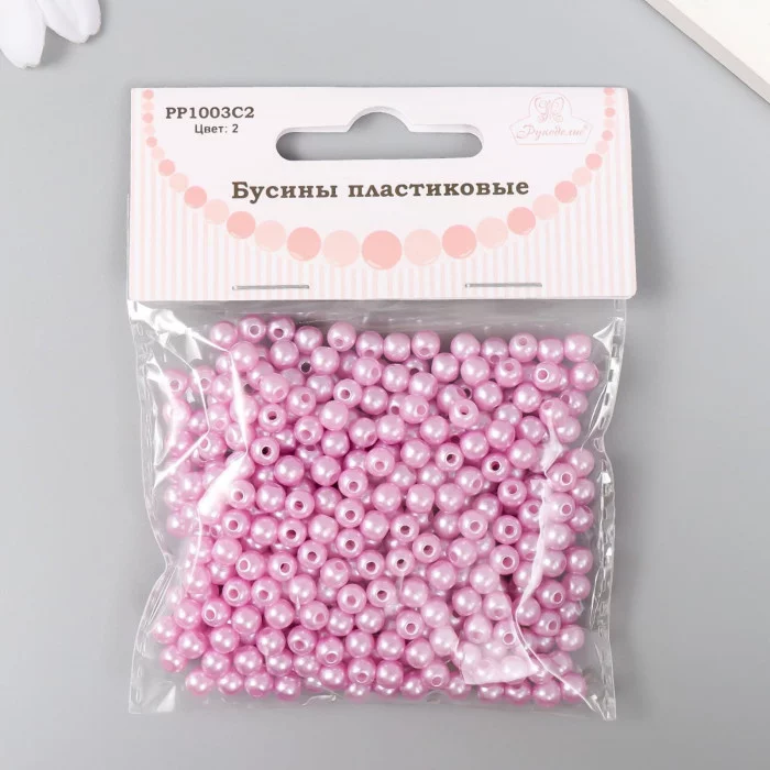 Набор бусин "Рукоделие" пластик, диаметр 5 мм, 25 гр, светло-розовый 9527171