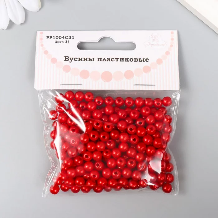 Набор бусин "Рукоделие" пластик, диаметр 6 мм, 25 гр, алый 9527180