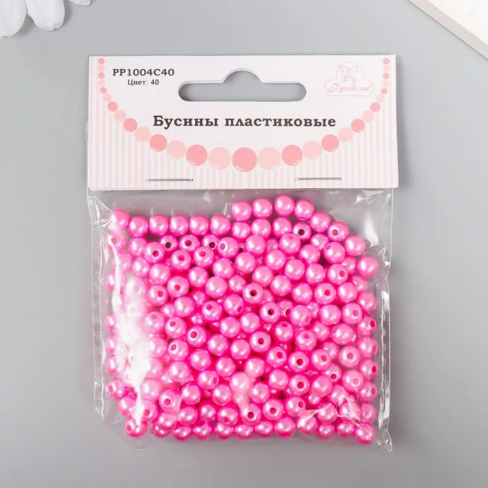 Набор бусин "Рукоделие" пластик, диаметр 6 мм, 25 гр, ярко-розовый 9527189