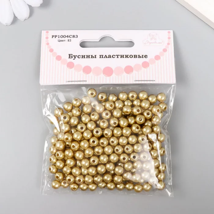 Набор бусин "Рукоделие" пластик, диаметр 6 мм, 25 гр, золотой 9527183