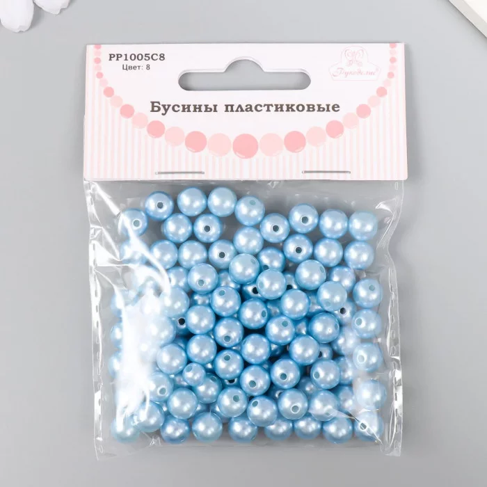 Набор бусин "Рукоделие" пластик, диаметр 8 мм, 25 гр, голубой 9527199