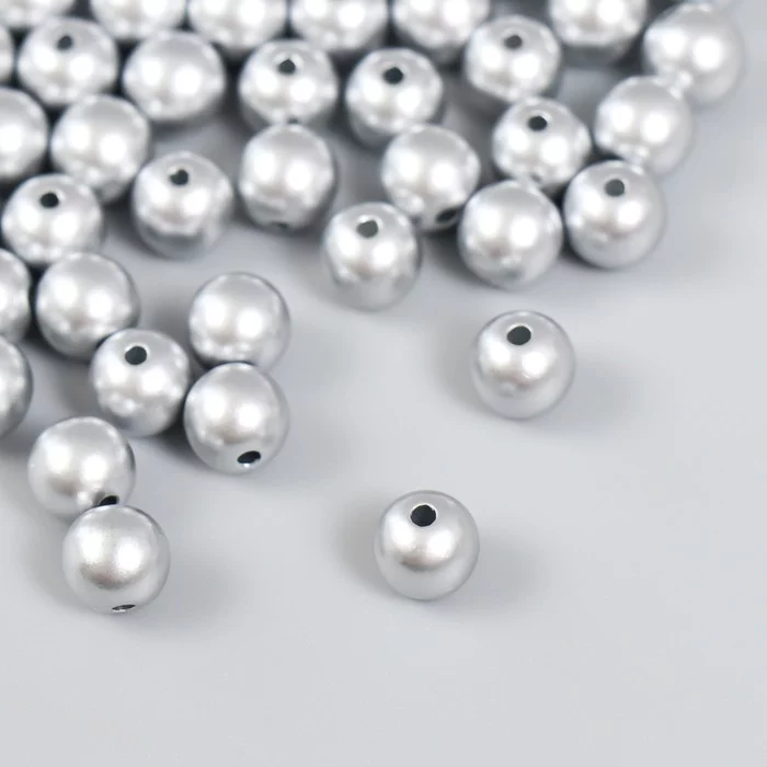 Набор бусин "Рукоделие" пластик, диаметр 8 мм, 25 гр, серебряный 9527194