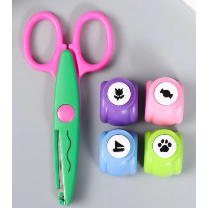 Набор для скрапбукинга Плавная волна ножницы фигурные 13, 5см+4 дырокола d=1, 2см 11, 2х18 см 94115