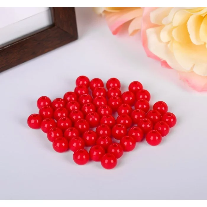 Набор глянцевых бусин "Астра" 50 шт, 8 мм, красные 4159370