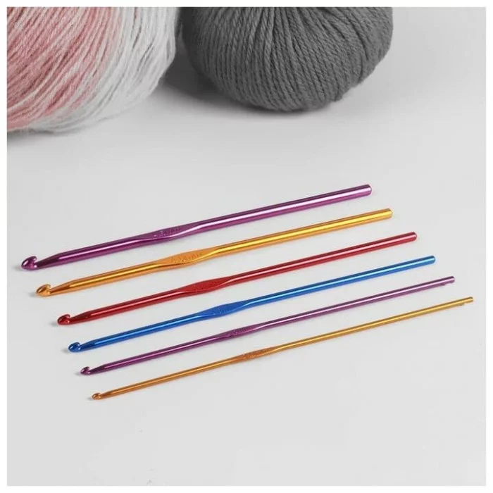 Набор крючков для вязания 6шт алюминий 14,5см d2/2,5/3/3,5/4/4,5мм РАЗНОЦВЕТ чехол АУ 7575572