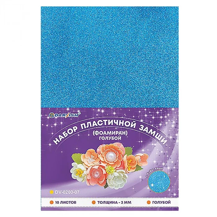 Набор пластичной замши с блёстками голубая А4 10л (фоамиран) DV-8200-07