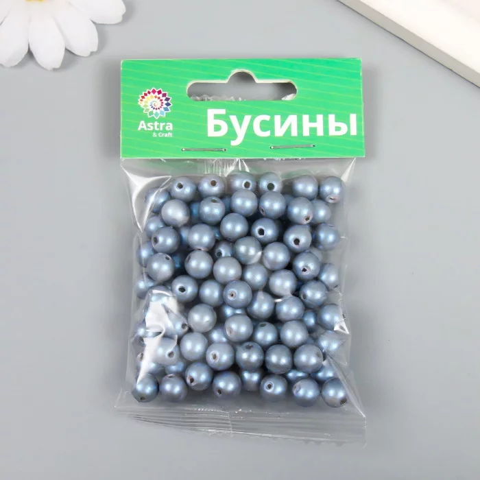 Набор пластиковых бусин "Астра" с покрытием АВ (имитация жемчуга), пластик, 8мм, 25 гр, серо-голубой