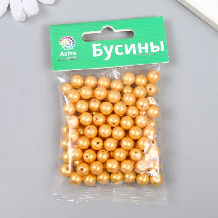 Набор пластиковых бусин "Астра" с покрытием АВ (имитация жемчуга), пластик, 8мм, 25 гр, жёлтый 94419