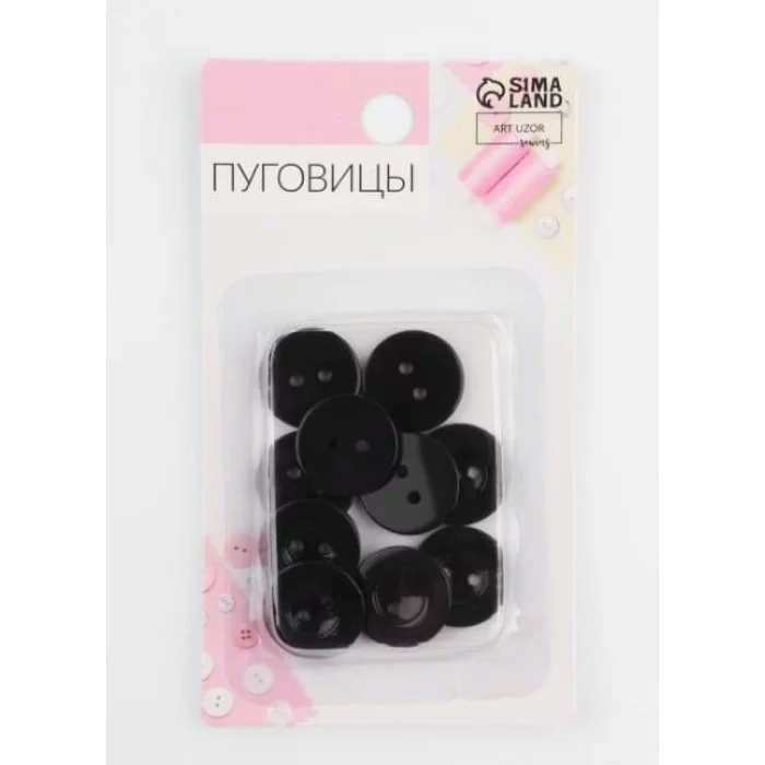 Набор пуговиц 2 прокола d18мм 10шт блистер пластик чёрный АУ 7069481