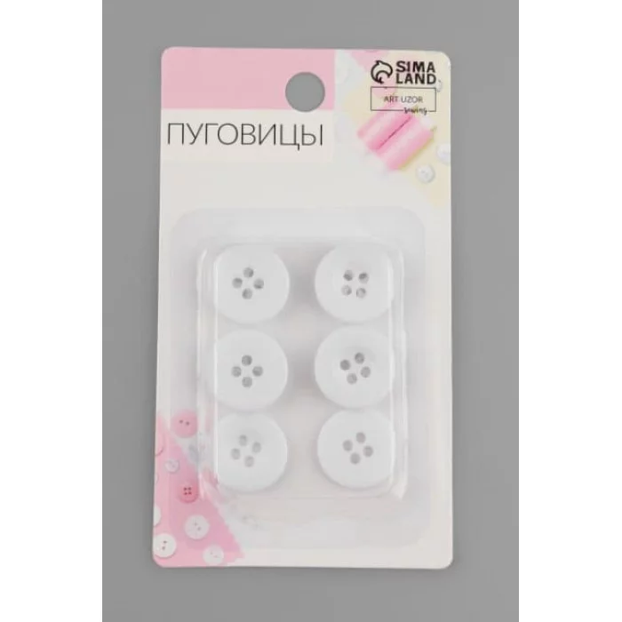 Набор пуговиц 4 прокола d18мм 10шт блистер пластик белый АУ 7069490