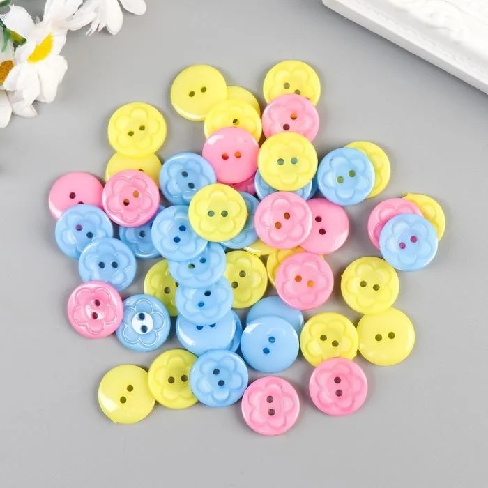 Набор пуговиц декоративных пластик "Цветочек в круге" набор 50 шт 1,8х1,8 см МИКС