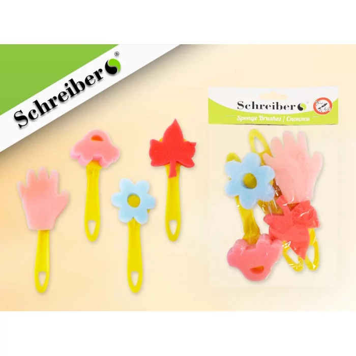 Набор спонжей художественных поролоновых S 1734 с пластиковыми рукоятками, 4 шт, раз. уп. 13х19 см