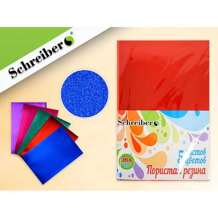 Набор цветной пористой резины S 5551 (ЭВА) МЕТАЛЛИК, А4, толщина - 2 мм, 5 листов/5 цветов, 10Д13695