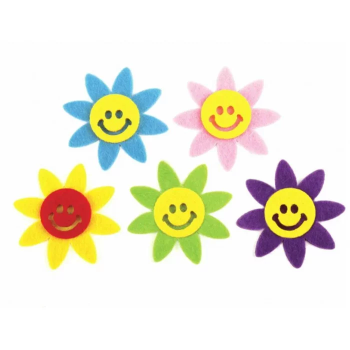 Изготовлены из фетра. В комплекте 5 красочных декоративных элементов в форме солнца. Предназначены для детей от 3 лет. Размер 5х5 см. Поставляются в пакете с европодвесом. Качественный клеевой слой обеспечит надежную фиксацию на любых поверхностях.