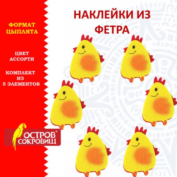 Наклейки из фетра "Цыплята", 5 шт., ОСТРОВ СОКРОВИЩ, 661497