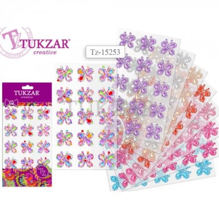Наклейки-стразы акриловые БАБОЧКИ, 10х24 см., 15 шт TZ15253