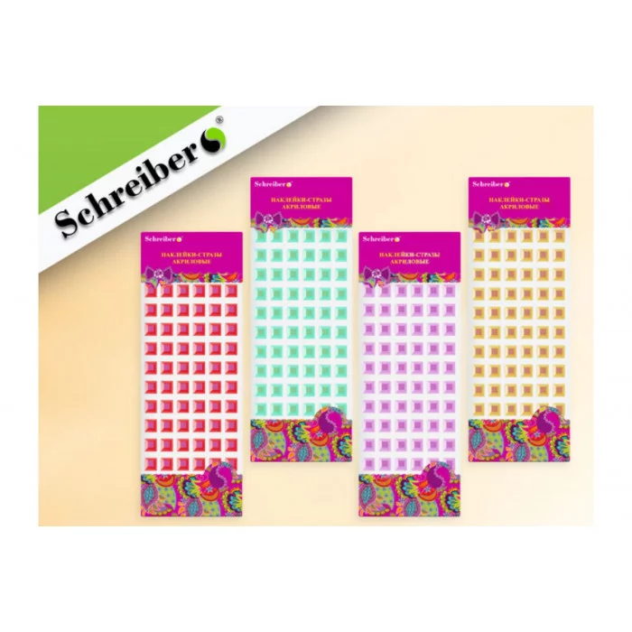 Наклейки-стразы акриловые S 2105 КВАДРАТНЫЕ, 10х22 см., 10 видов в ассортименте.